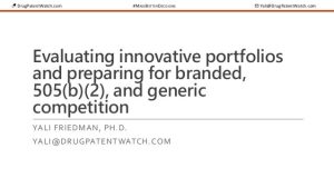 Evaluating innovative drug portfolios and preparing for branded, 505(b)(2), and generic competition