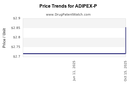 - Pricing is predominantly influenced by generic competition, with branded ADIPEX-P maintaining a premium but relatively stable price point.
