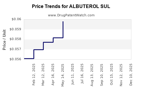 United States: The retail price for inhaled Albuterol sulfate (e.g., inhalers like Ventolin) has historically hovered around $30–$40 per inhaler for brand-name versions, but generics are frequently priced below $20, with some as low as $10 per inhaler, depending on the supplier and volume discounts [2].