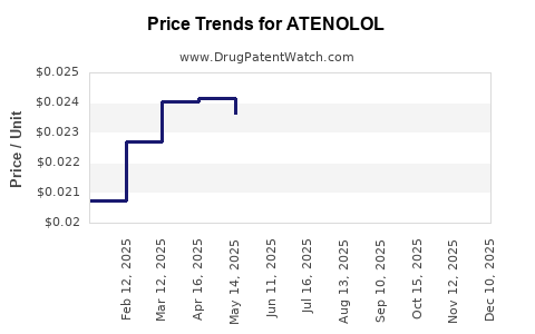 The predictable decline in pricing suggests low-margin outlooks for atenolol but presents opportunities in manufacturing efficiencies and markets with limited generic competition. Diversification into combination therapies may provide added revenue streams.