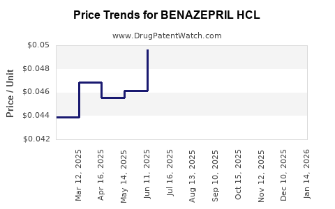 - Short-term (1–3 years): Retail prices for branded Benazepril HCl are expected to decline marginally—approximately 5–10%—due to aggressive generic competition and healthcare cost containment policies.