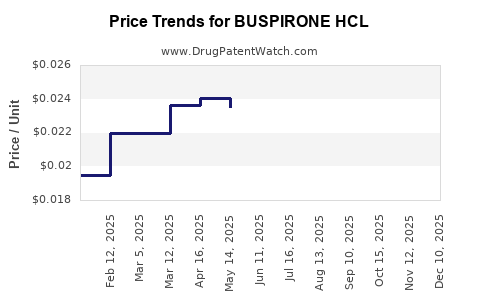 The generic market landscape is highly competitive, with multiple pharmaceutical manufacturers producing bioequivalent formulations. Patent litigation and exclusivity extensions are limited for buspirone, facilitating rapid generic proliferation, which strongly influences price trends.