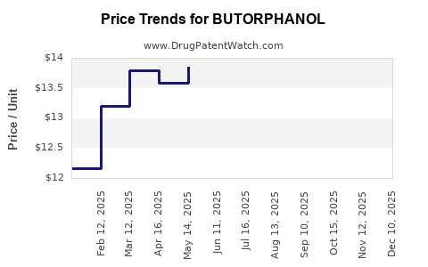 Pricing varies significantly across formulations and regions. Injectable butorphanol typically costs between $10 to $20 per dose in developed markets, while intranasal formulations retail at approximately $30 to $50 per unit. Generic versions have driven prices downward, with some markets observing a 20-30% reduction following patent expirations.