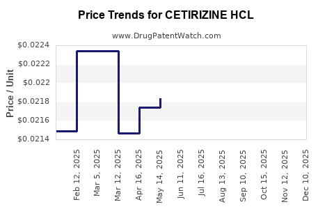 Cetirizine HCl remains a cost-effective, widely accessible antihistamine with expanding global reach. Regulatory advancements, patent landscapes, and market saturation will shape future price trajectories. Stakeholders should focus on emerging markets, formulation innovations, and cost-efficient manufacturing to maximize growth and profitability.