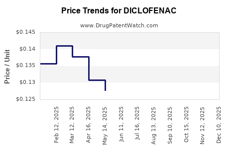 Over the last five years, the retail price of diclofenac has declined by approximately 15%-20%, primarily due to increased generic competition. However, innovative formulations and delivery systems sustain higher price points for premium segments.