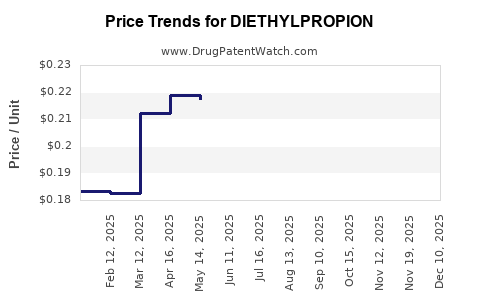 Historically, prices for diethylpropion have remained relatively stable due to its generic status. Unlike branded drugs, which may see significant price impacts upon patent expiration, generics tend to see downward pressure in pricing over time owing to increased competition.