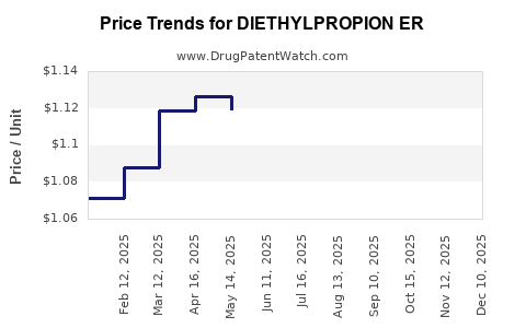 The advent of generics has exerted downward pressure on Diethylpropion ER prices. Typical unit costs range from $2 to $10 per tablet depending on dosage, quantity, and pharmacy. Brand-name formulations rarely exist currently, having been replaced by generics.