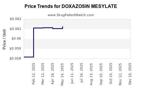 Doxazosin Mesylate operates within a mature, highly competitive market characterized by stabilized and declining generic prices. While immediate price reductions are limited, long-term outlooks suggest stable demand with moderate pricing pressures. Manufacturers should focus on operational efficiencies, strategic market entry, and formulation improvements to sustain profitability amidst inherent commoditization.