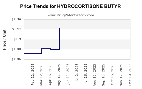 Given current trends, compounded with anticipated patent expiries and increasing generic presence, prices for hydrocortisone butyrate are expected to trend downward, with an annual decline of approximately 3-5% in mature markets.