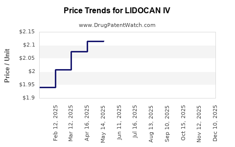 Historically, the price of LIDOCAN IV has declined steadily post-patent expiration, adhering to typical generic drug market behaviors. The average wholesale price (AWP) for a standard 50 mL vial in North America was approximately USD 15–20 in 2022.