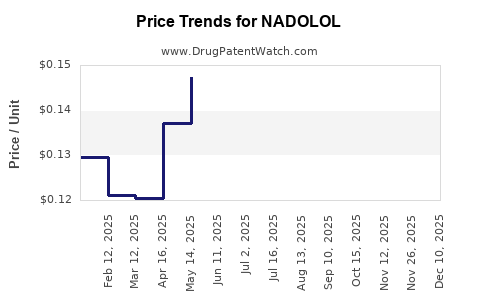 Nadolol, a non-selective beta-adrenergic receptor blocker, plays a critical role in managing conditions such as angina pectoris, hypertension, and certain cardiovascular disorders. Market dynamics, patent landscape, manufacturing trends, and emerging therapies influence its pricing and commercial viability. This analysis captures current market realities and offers price trajectory insights for stakeholders, including pharmaceutical companies, healthcare providers, and investors.