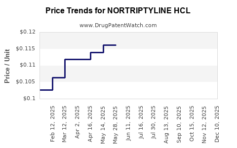 Over the past five years, the price of Nortriptyline HCl has significantly declined due to generic competition. In the U.S., the average wholesale price (AWP) for a 30-tablet supply of 25 mg capsules decreased from approximately USD 5.50 in 2018 to around USD 2.50 in 2022 [2].