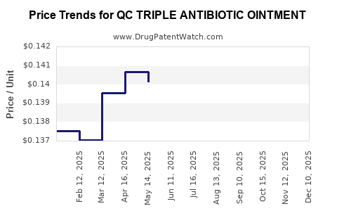 Based on current trends and market forces, the price of QC Triple Antibiotic Ointment is expected to experience a moderate decline of approximately 2-3% annually in mature markets such as North America and Europe due to generic commoditization [3].