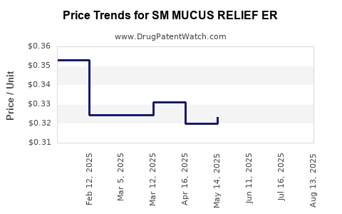 SM Mucus Relief ER occupies a strategic niche within the lucrative OTC respiratory segment. Its success hinges on effective brand positioning, navigating patent landscapes, and adapting to regional demand variations. Price projections exhibit a moderate decline over a five-year horizon, driven by increased generic competition and market maturity. Companies must weigh premium pricing against competitor offerings and leverage innovative distribution avenues to sustain profitability.