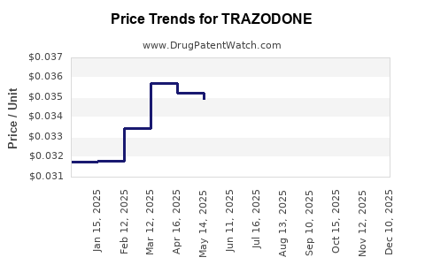 While patent exclusivity no longer constrains pricing, regulatory changes impacting off-label use policies or generic market entry can influence pricing patterns. Administrative measures aimed at reducing opioid and sedative dependence may also impact trazodone prescribing and, subsequently, its market dynamics.