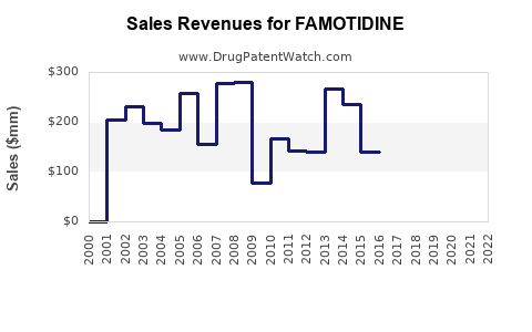 Famotidine emerged as a widely prescribed OTC and prescription medication following its FDA approval in 1986. Its extensive prior patent exclusivity facilitated substantial revenue streams for manufacturers like Merck & Co. However, patent expiry in various jurisdictions around 2000 and in 2010, coupled with the advent of generic formulations, precipitated a sharp decline in branded sales. The global market's maturation was further compounded by the advent of proton pump inhibitors (PPIs), which gradually supplanted H2 antagonists for many acid-related conditions.