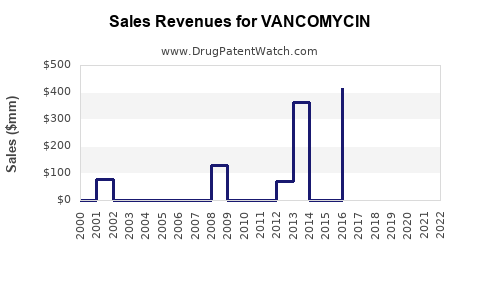 Annual Sales Revenues and Units Sold for VANCOMYCIN