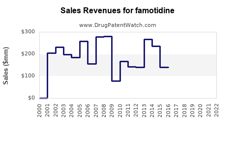 | Drug Sales Revenues: | Drug sales revenues for famotidine |