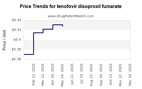 | Drug Prices: | Drug price trends for tenofovir disoproxil fumarate |