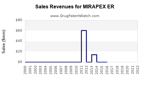 - What are the global sales for MIRAPEX ER?