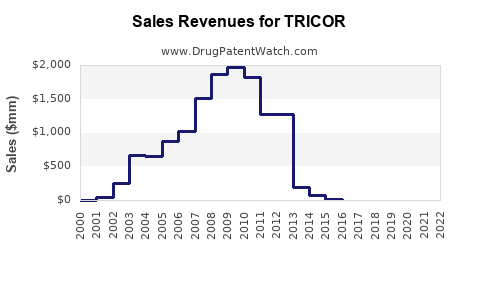 Patent expiry in 2016 led to the entry of multiple generics, significantly reducing Tricor’s market share and pricing power, causing revenue to decline from peak levels.