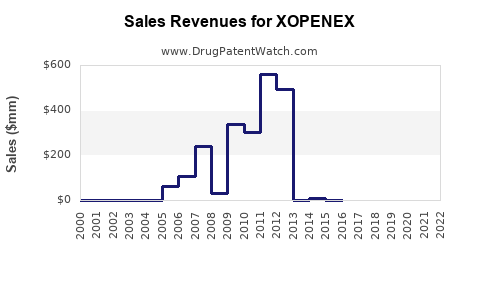 - Patent expirations have significantly eroded XOPENEX’s market share and revenue, with projections indicating continued decline over the next five years.