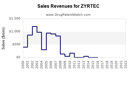 ZYRTEC’s revenue historically peaked in the early 2010s, with estimates exceeding $1.4 billion globally in 2012 (3). Following patent expiry and increased generic competition, revenues declined modestly but stabilized due to brand loyalty and OTC accessibility.