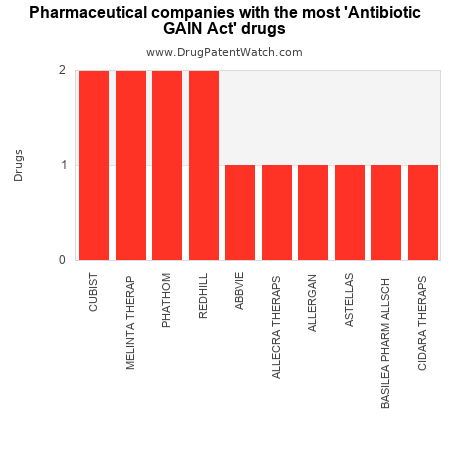 This chart shows the companies which have received the most GAIN Act exclusivities in the past five years.