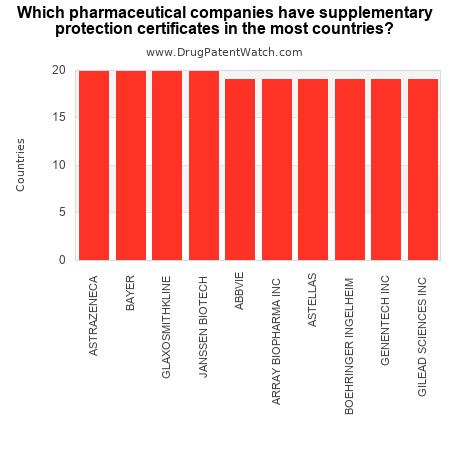 This chart shows the drug companies with the most supplementary protection certificates (SPCs).